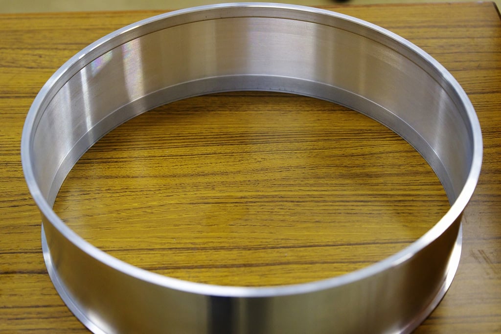 綾目精機㈱は金属精密切削加工の会社である。芝刈機の部品から大型印刷機の部品まで、幅広く顧客ニーズに応える。中でも得意とするのはシャフトなどの軸物加工。通常、軸物を切削加工すると、どこかに歪みが出たり、組付け後のバランスが悪くなったりするが、高精度をウリとする同社の加工品は100分の1mm単位まで歪みが抑えられ、「直進性