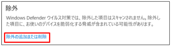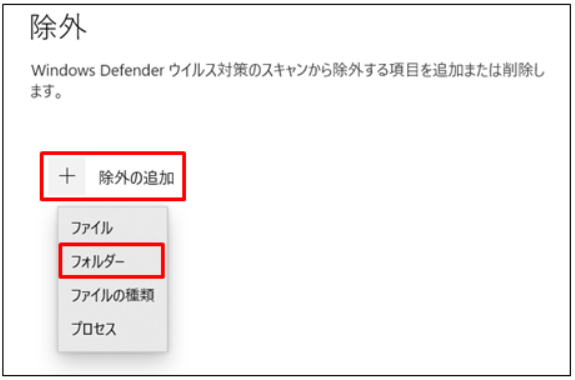 Windowsセキュリティの設定で、Excelデザインファイルが格納されているフォルダーをスキャン対象から除外することにより、DefenderによるVBAコードの削除を回避することができます。