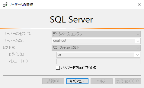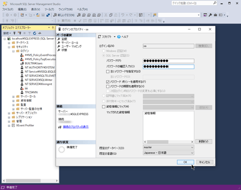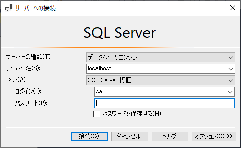 パスワード:設定したsaのパスワード