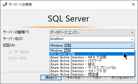 サーバー名:localhost¥SQLEXPRESS