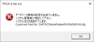 Tx5.0は、ショートカットの作業フォルダのTx50.cfgを参照、または、Tx5.0.exeの引数でcfg=で指定されたcfgファイルへのパスを参照します。このファイルが存在しないかもしれません。 データベース設定ツールで設定します。