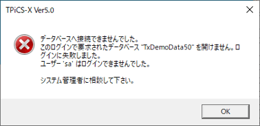 ・データベース名、TxDemoData50が未作成。