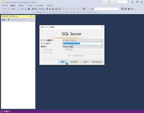 インスタンス名:SQLEXPRESS、Windows認証でログインでSQL Server Express に接続