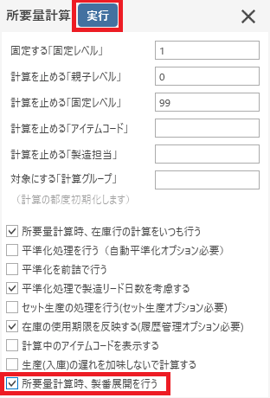 製番展開が完了した後、所要量計算が実行されます。