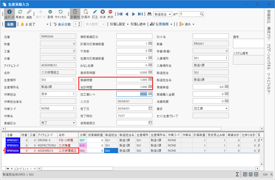 - 「WW0003 一次修理組立」を選択します。