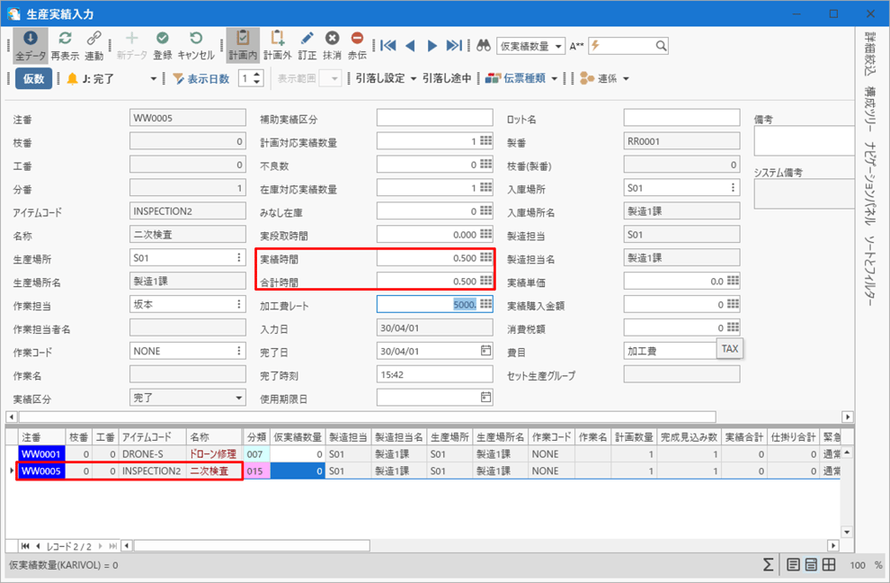 (17) 二次検査が終わり生産実績入力を行う