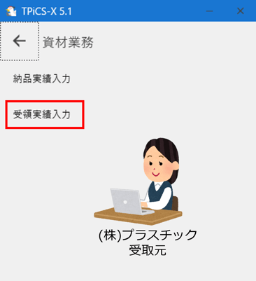 受領処理を行いますので、[受領実績入力]ボタンを押します。