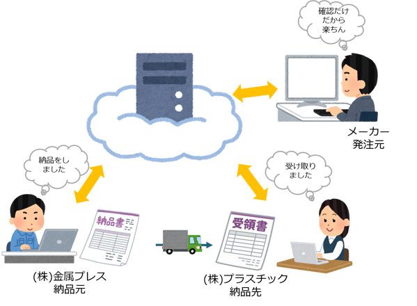 部品メーカーから外部委託先へ直接納品される「直納」の流れを管理します。