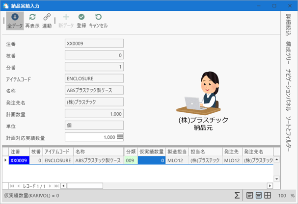 (株)プラスチックからOEMメーカーへ納品する納品処理を行います。