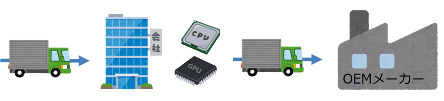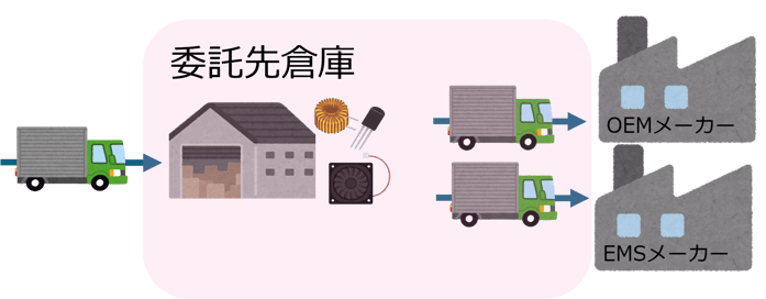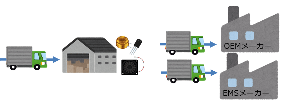 OEMメーカーやEMSメーカーが自社で調達できない部品は、部品メーカーから直接、製造を委託している会社へ納品してもらうことがあります。これは、取引先口座がない、といった理由で発生します。