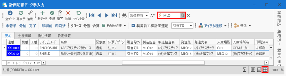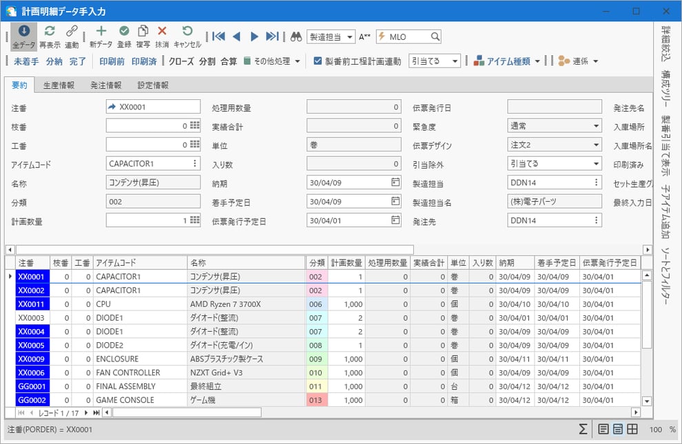 [計画明細手入力]フォームを開くと、作成された計画明細一覧が確認できます。