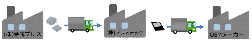 協力会社に加工を依頼する際、自社で加工を行わない場合は材料の受け渡しが発生します。時間とコストの観点から、部品メーカーから協力会社へ直接、材料を納品してもらう方が効率的な場合があります。