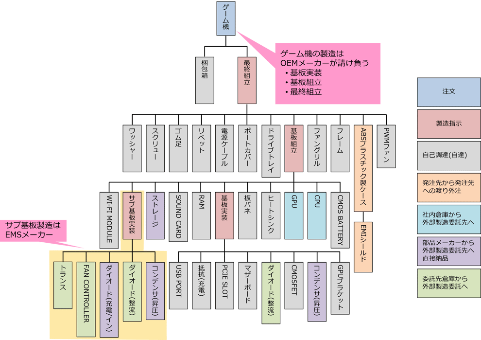 発注した部品の納品先を自社(ゲーム機メーカー)とし、必要な数だけOEMメーカーへ渡します。