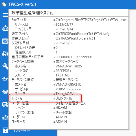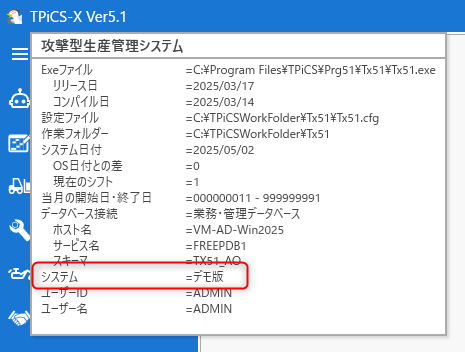 ※メインメニュー上の[右クリックメニュー]-[システム情報]からも同じ内容を表示できます。