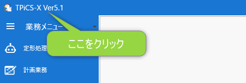 メインメニューのタイトル部分をクリックするとシステム情報パネルが表示され、その「システム」欄で確認できます。