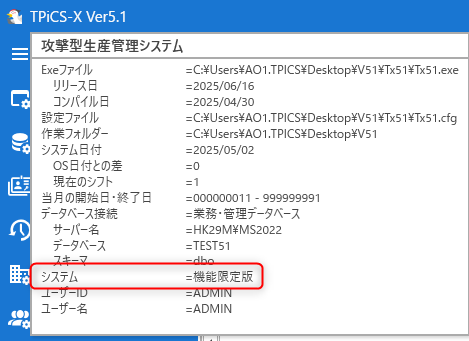 ライセンス認証を行わない環境でアイテムマスター51件以上のデータベースに接続すると、機能限定版として動作します。