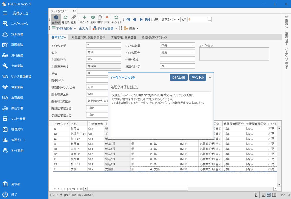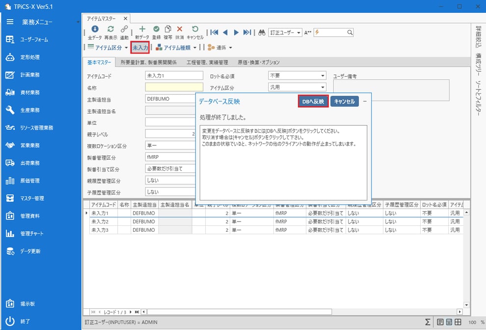 [DBへ反映]ボタンをクリックして登録します。