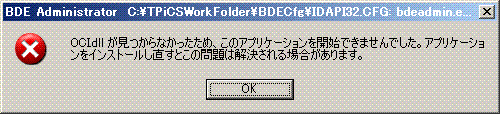 64bitOSで且つOracleデータベースを使用し、TPiCSをデフォルトのインストール先にインストールしたとき、エイリアスの接続時に下記のようなエラーが発生します。