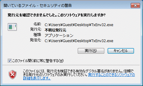 Windowsのセキュリティの設定により、他のコンピュータやインターネットからダウンロードしたEXEファイルを起動しようとすると、下記のようなメッセージが表示されることがあります。